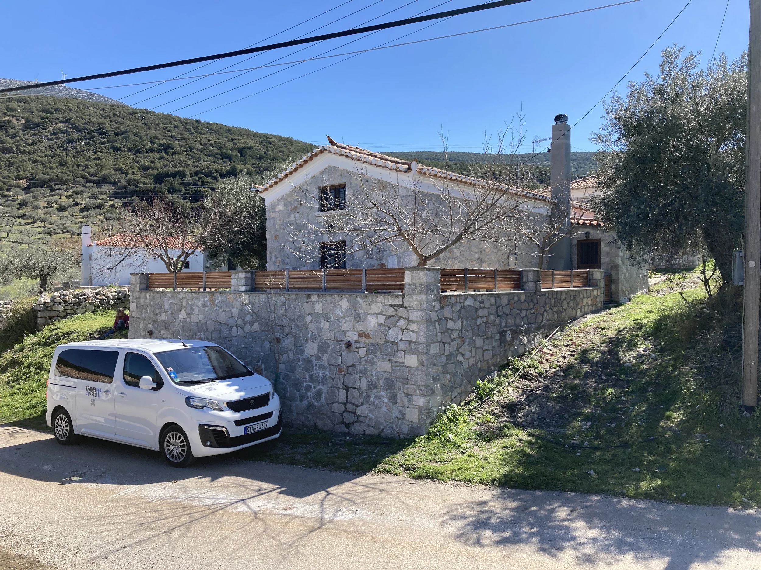 Am nächsten Morgen scheint die Sonne und wir erkunden das Dorf. Viel ist davon nicht übrig. Pelei wurde im Jahr 1939 gegründet. Der Staat gab das Land 20 Familien, die es bewirtschafteten und weitgehend als Selbstversorger lebten. Ein Eselspfad war die einzige Verbindung zur Außenwelt. Er führte über die Berge in das Örtchen Didima. Ende der 1950er Jahre baute man anstelle des Pfades eine Straße - und die Menschen verließen Pelei. Die Häuser begannen zu verfallen. Nur ein Haus ist noch dauerhaft bewohnt von einer Frau, die freundlich herüber winkt. Ein paar weitere Häuser sind hergerichtet und dienen als Wochenend- oder Ferienhäuser. Die Kinder finden es herrlich, sie bauen zwischen den Ruinen ein Steinmuseum, freunden sich mit einem der drei Dorfhunde an und streunen den ganzen Tag herum.